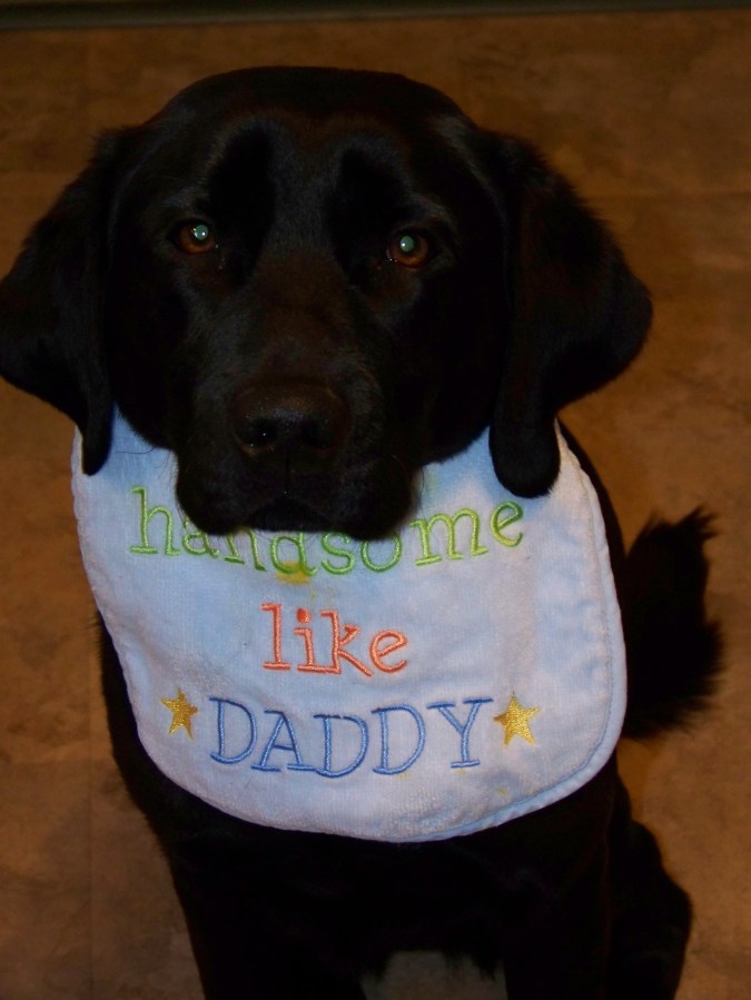 Izzie wears Luke’s bib (I swear I was not the one to put this one her)