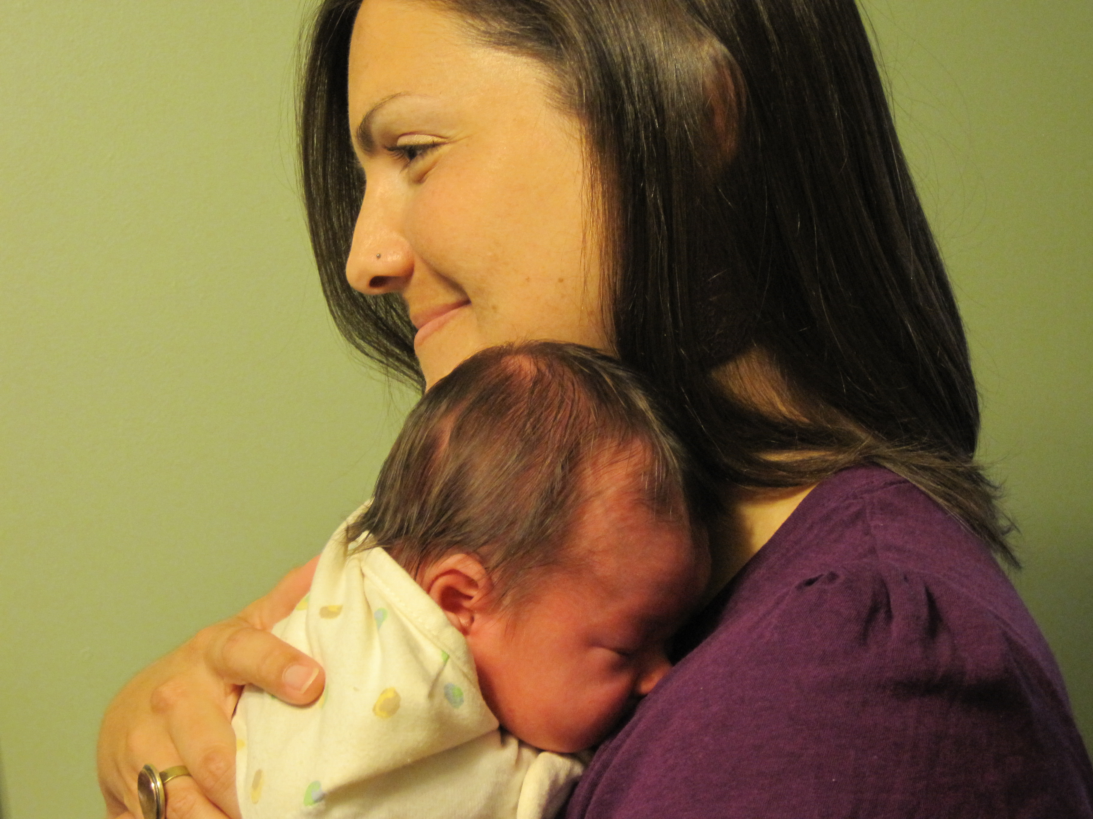 We did about 24 hours of breastfeeding only, but she was pretty angry during that 24 hours. We think she’s just not working hard enough to get enough. We think this is because of a tongue tie – not sure if I mentioned this before. We have an appt in about 2 weeks to have the frenotomy (?) and hope that will help make her a more efficient breast feeder. Until then, we continue to put her to breast with the shield before most feedings (slacking in the middle of the night), top her off with an ounce of two of pumped milk fed via syringe and tube, and pump for 15 minutes at almost every feeding. It’s exhausting, but it’s getting her what she needs, and she seems to be getting bigger – we think so anyway! She has another appt with the baby massage therapist/chiropractor tomorrow to see how her jaw is doing in terms of alignment. She had some jaw popping which went away after our treatment last week, but is now back. We’re hoping that issue isn’t causing her any pain and that it’s not really an issue at all. Two of her feedings today went splendidly with no fighting me, and just relaxing at the breast. Right now, she’s not eating super often (3+ hours), but is eating a lot at each feeding. Now if only we could get her to go right back to sleep after the nightime feedings, we could get a little more rest.