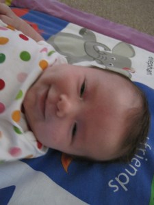 Miss Margeaux is almost 7 weeks old! Not sure if I am just having a good day, or if things are starting to settle down. Or maybe I am just getting used to the chaos! My boobs finally feel like they are chilling out. I am now able to go about 4.5 hours in between pumpings. Ryan’s unofficially “back to work” as his gigs and teaching is picking back up after the summer off. Margeaux and I are having more and more “girl time” and we’re doing pretty well. She’s doing a better job at settling herself down and being other places besides our arms. Although most times, she just wants to be held. She’s sleeping in her crib at night. This is helping me sleep as well – now I can’t hear her talking to herself in there. I can hear her when she really starts to fuss, and I get up then to feed her. Now that I’ve cut back on pumping, I am able to sleep through one of the late evening feedings (if I can get myself into bed by 8pm) and Ryan can sleep through one of the night feedings (both depending on how the timing works out). She’s gone up to 4.5 hours between feedings at night (but was only sleeping for 3 of those hours). I’d like to try to get her into bed earlier than 11pm, and establish a kind of “bedtime” instead of just putting her down when we can get her to sleep. I am sure she’ll have none of that. It just feels a little more sane around here. She can sit in her swing or lay on her activity mat (most times) and just look around. I am not as afraid to make plans, and have plans to attend a mothers’ group, baby and mom yoga, and today we took Izzie to a dog festival and K9 Kerplunk Doggie Dunk.
