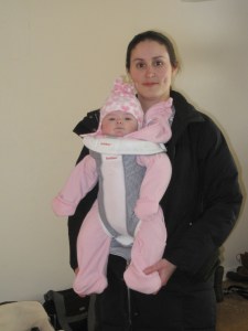 . . . but we ventured out for a walk around the block with Izzie today.  Here we are, all suited up.