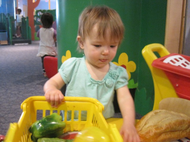 After we met up with Amy, we headed over the Children’s Museum.  We checked out the 0-3 play space, where M especially liked the groceries and shopping basket.