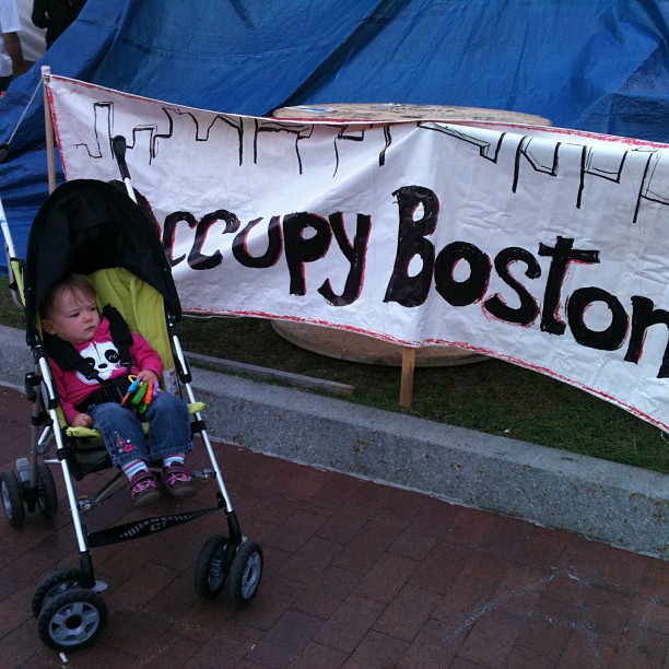 What a whirlwind weekend!  On Saturday morning, Miss M and I headed to Boston to visit my cousin, Amy.  I was a little nervous about a solo road trip with the kid, but there was no reason to be.  It’s only about an hour and a half drive to Boston, and I’ve learned to time road trips with nap times, so she slept the whole way there.  M and I parked at the Children’s Museum and headed over to check out the Occupy Wall Street protesters near South Station.