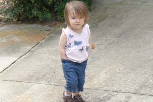 In Gainesville, we spent an afternoon hanging out in my aunt and uncle’s backyard on a beautiful Florida day. All of a sudden M was trying to put her hands down her pants on the outsides of each of her legs. She was really insistent about doing this and it took us a few minutes, but we figured out that she was trying to put her hands in her pockets like Grandpa Ron. Problem was, she didn’t have any pockets.