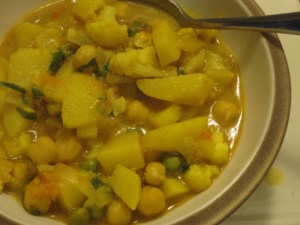 Tried three new recipes in the last week from the online Whole Food Kitchen seminar. This one was from one of the contributors and I wouldn’t recommend it for a Sunday night at 7pm – lots of chopping and prepping (10 potatoes, a whole head of cauliflower!). R absolutely loved it. I liked it a lot, but was so exhausted from the weekend and all the prep that I think I didn’t really savor it. Looking forward to trying it again as leftovers. I have a feeling this is one of those things that gets better with age.