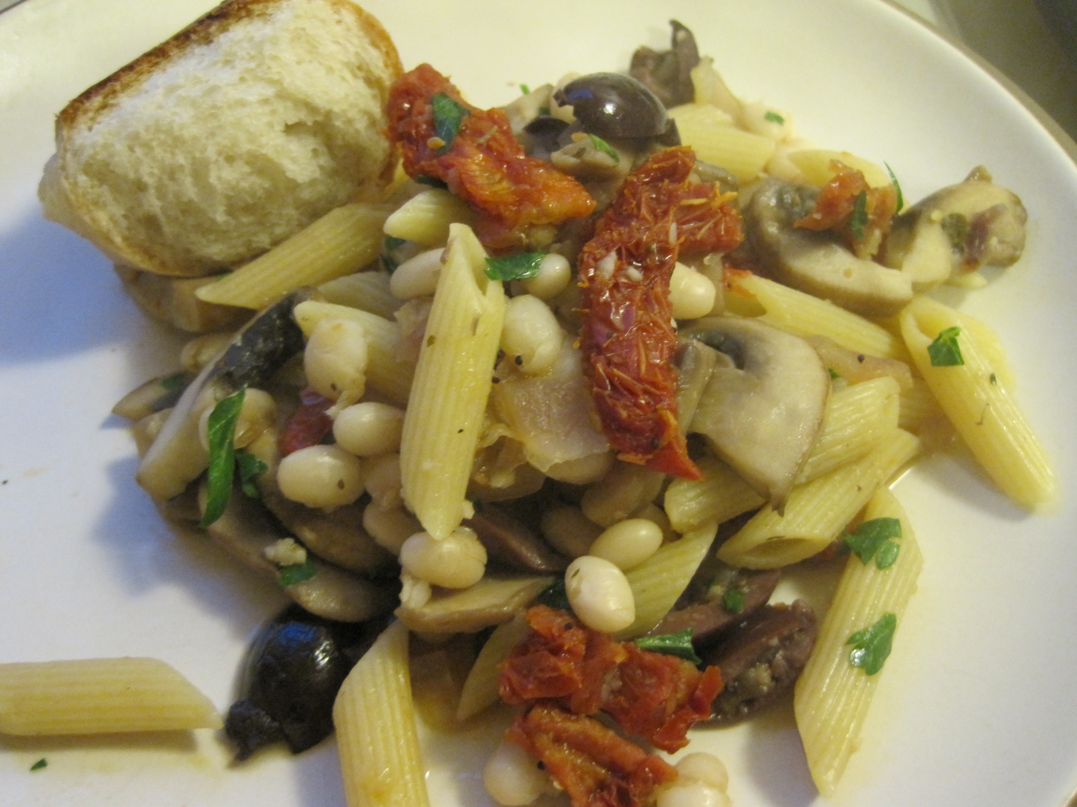 I continue to be amazed by the recipes in Whole Food Kitchen. This one was super easy, especially because I did most of the prep, including cutting the veggies and cooking the beans, the night before. I am still working on how long to soak beans and how long to cook them. This was such an easy weeknight meal and so yummy. Wish I could share the recipe . . . Miss M loved the white beans (I used navy) and ate them like candy. I liked the sundried tomatoes and olives, both of which are not my favorite. I’m glad I tried something that I wasn’t sure I’d like. This workshop is awesome. Not only is it making me try new things now, it’s giving me so many fun things to try later. There is no way with my lack of free time that I could make all these recipes in a week or try all these new things. Looking forward to baking my own bread and making my own almond milk – but not sure it’s all going to happen in the next 8 weeks!