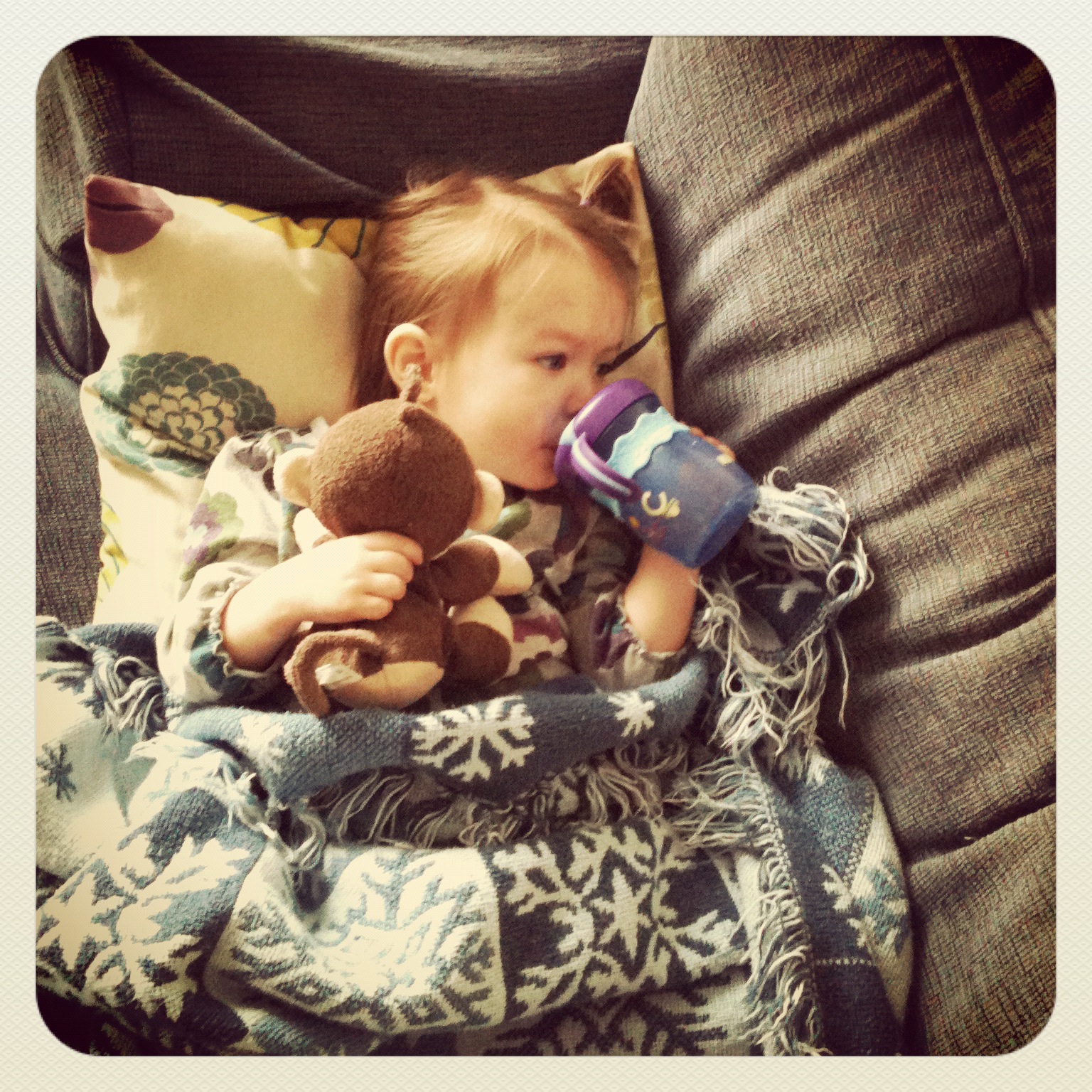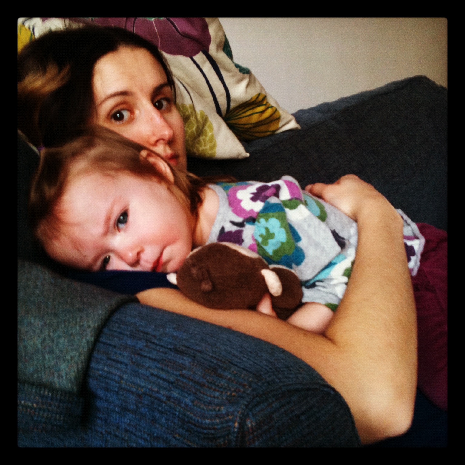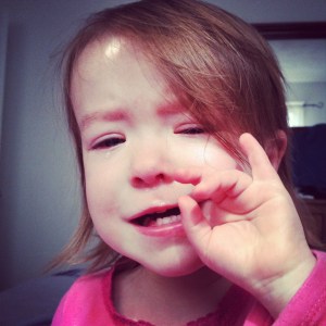 What the heck is wrong with this poor girl? She was sent home from daycare on Monday with a fever of 103 and is just not herself. She’s got two canine teeth just about the break through and doctor couldn’t find anything wrong with her, so I can’t help but wonder if this is a wicked bad case of teething?! Whatever it is, be gone!