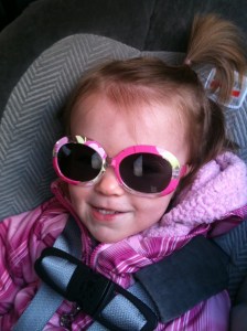 Then there’s this one. She’s exploring boundaries big time, but looking super cute while doing so. And to top that off, she’s now saying “I love you” and adding a little “Mommy” or “Daddy” at the end for good measure. She’s not saying it when she’s doing something bad, she’s saying it when she really means it, or at least when we say it – like when we leave or hang up the phone. It sounds like “all-lub-do” or something like that, but it’s so adorable. She’s also saying Grandma and Grandpa all of a sudden without a lot of pressing from us. It sounds more like “gee-ma” or “gee-pa,” but it’s so sweet. I can’t believe how fast she’s using new words. She’s going to be repeating our phrases in no time and then we’re going to be in deep doo-doo (oh, no, I’ve got to stop using that one!).