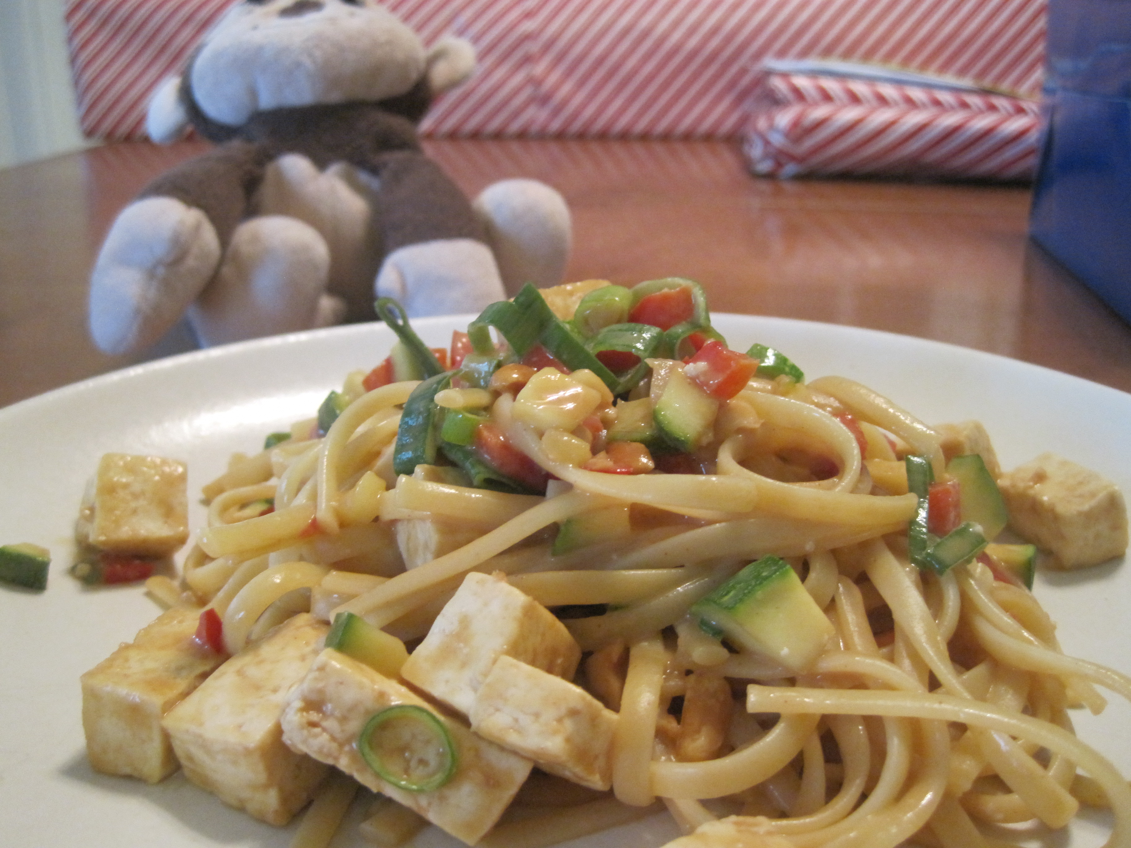 So far I’ve made Family Friend Pad Thai (pictured), Curried Chickpeas, Orange Creamsicle Smoothies and Avocado and White Bean Wraps.