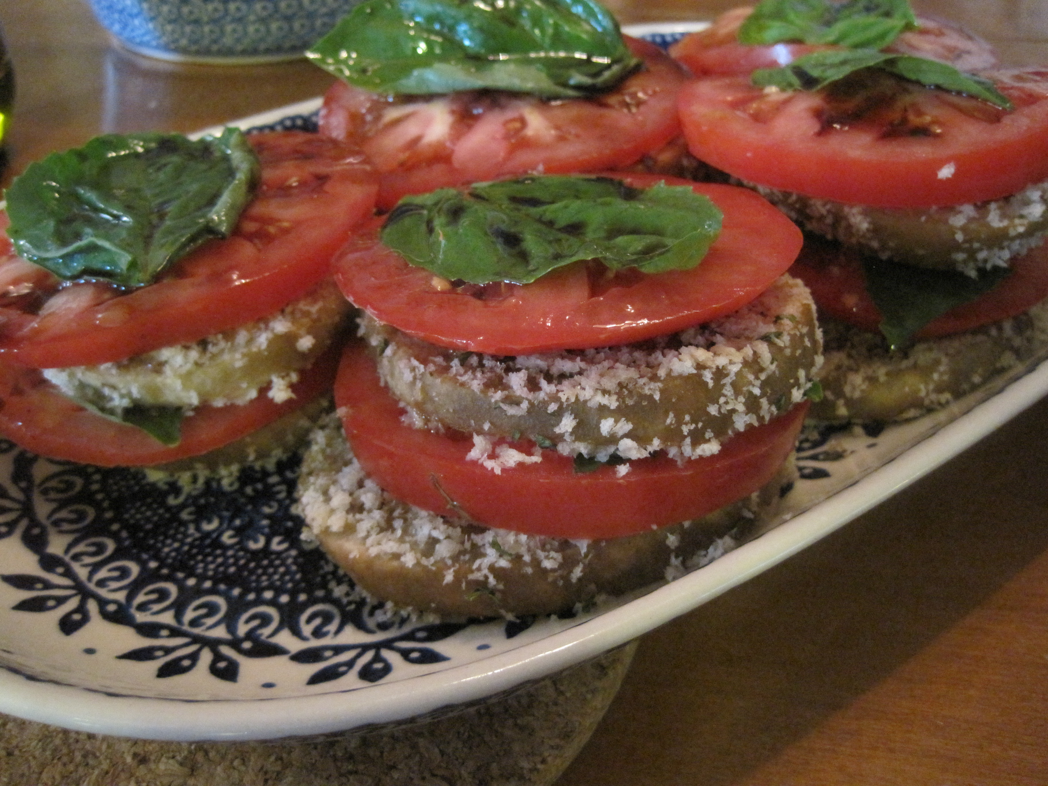 Since I last posted, I’ve tried a few new recipes and they all rocked: Broccoli Noodles with Thai Peanut Sauce, Easy Fried Rice, Clean and Fresh Quinoa Tabouli, Maple Tamari Roasted Almonds and Roasted Eggplant Napolean (pictured below).
