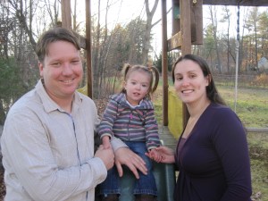 We had a great Thanksgiving in Contoocook, NH at my Aunt and Uncle’s house. We got to see all three of their sons and my cousin Amy from Boston. We got to hang with my aunt and uncle’s awesome friends and Izzie got to play with a year and a half old golden retriever named Dudley. M loved Dudley too! M skipped her nap, climbed out of her pack and play and threw the biggest, angriest fit I’ve seen to date on Thanksgiving night, but it was still a great trip!