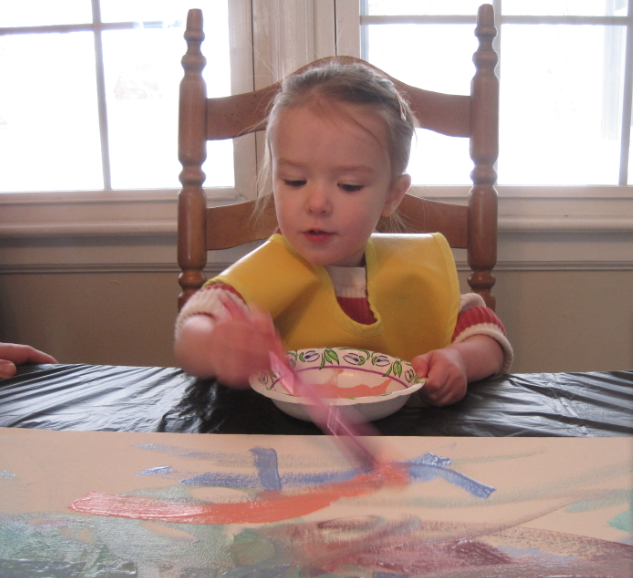 We got a few inches of snow overnight and it was still snowing when we got up this morning. R’s school was cancelled for the day, he was keeping M home and wasn’t too keen on me driving in the snow at 37 weeks pregnant, so we all took a snow day! With a baby #2 coming in about 21 days (or so) and my dad arriving in a little over a week to be on baby watch with us, our days as a three person family are numbered. While I feel guilt over missing work (why, why, why?!) I’m still able to enjoy the day. I think it’s more anxiety about running out of paid days off. Not counting my 4.5 weeks of short term disability, I’ll be using 2 weeks of maternity leave and 1 week of vacation, leaving myself 3 days of vacation for the 2+ months I’ll have before the year renews after I come back from my 12 weeks of maternity leave. Oh well, I can take unpaid days – I shouldn’t concern myself with it now! Anyhow, it’s been a great day! M and R slept until after 8am while I did some work from home. We had homemade pancakes for breakfast. M painted a beautiful canvas from something I saw on Pinterest for her new baby sister or brother. The only catch is, we had to choose which name to use and went with the girl name. If it’s a boy, we’ll just have to do it again! I’ll post the full pictures after the new baby is born – we’re not sharing the name until then. After painting, M and R enjoyed some shoveling and snow play with Izzie while I sipped homemade hot chocolate from the couch. R even played some ukelele while M danced with her new monkey (we got a box of goodies in the mail today from Aunt Zelma and Uncle Steve). What a great day!