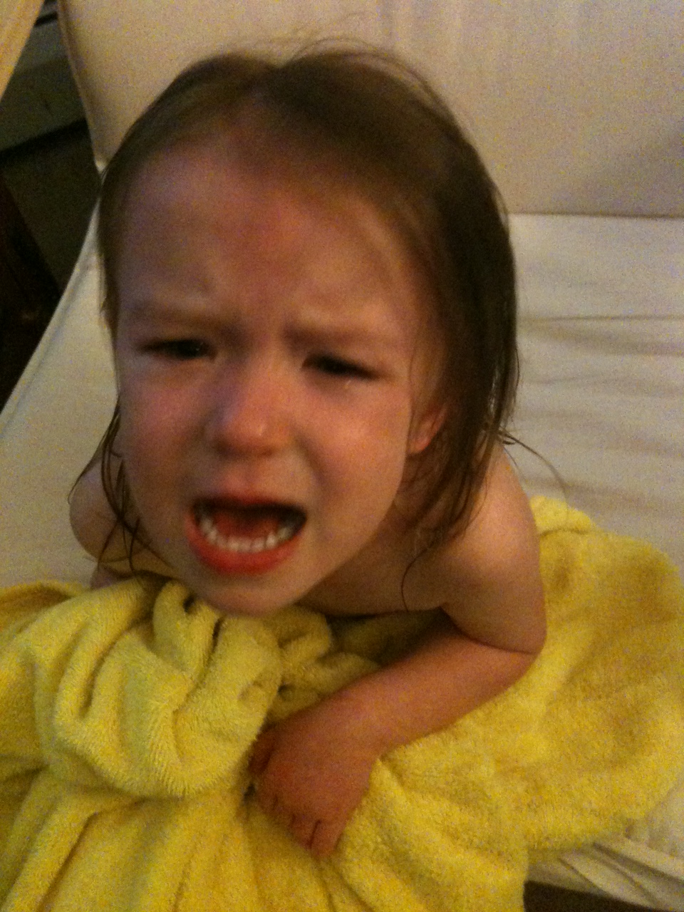 She’s crying because I gave her sister the green pacifier instead of the pink pacifier. How this affects her – I do not know. But it’s just absolutely devastating and ruins her whole night. Such is toddler life I guess.