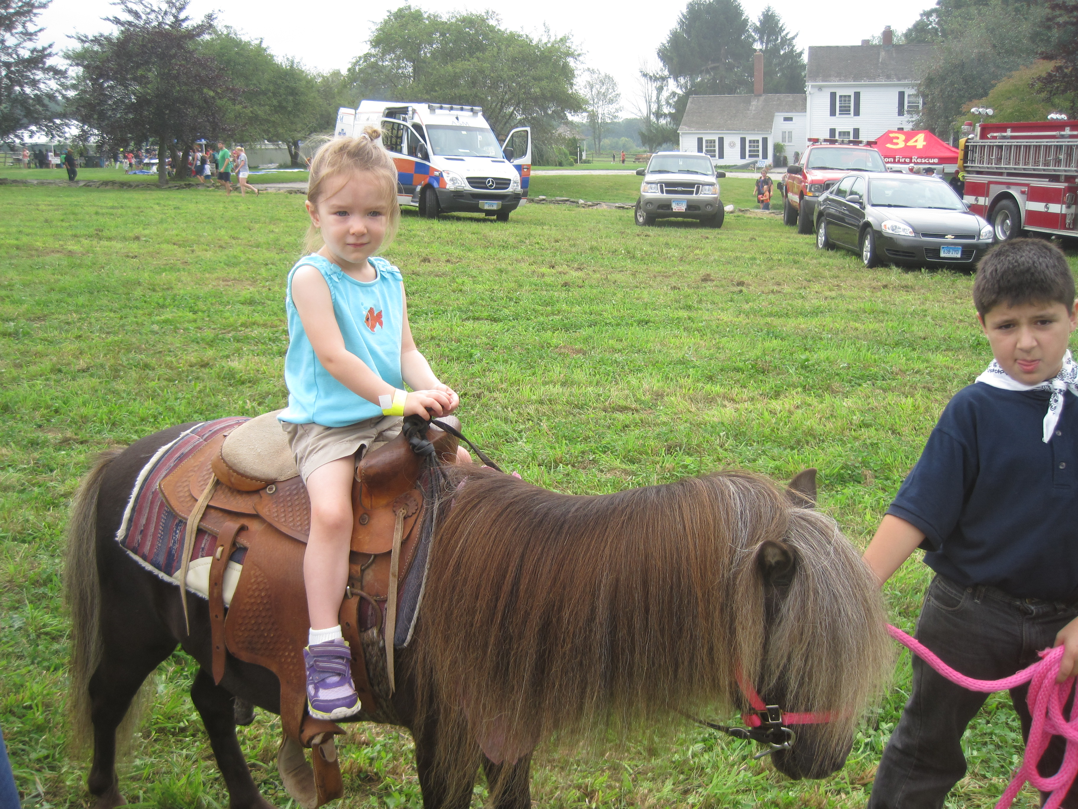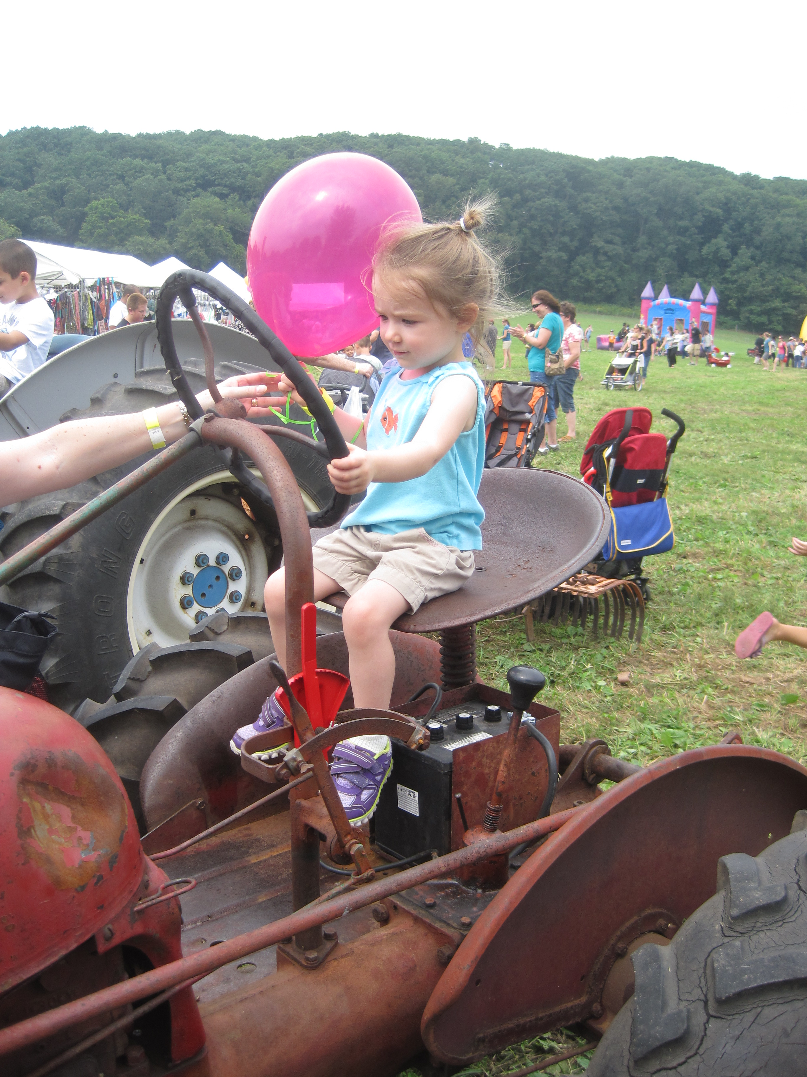 Our local Children’s Museum had an awesome fundraiser at a local farm yesterday. I was hesitant to go because I just wasn’t feeling like braving any big crowds. Upon arrival I was worried – long line for the shuttle, lots of cars, kids everywhere, dark clouds in the sky. But we went for it. And I’m so glad we did. There was so much to do and it was all so nicely spaced out around the farm. This farm is a dairy farm and they make their own ice cream. It was all you can eat ice cream and it was SOOOOOO good. It was especially good since this was probably the first (and second) bowl of ice cream I’ve had since going back on dairy. M was so excited that they had a dunk tank. She’d seen one in one of her Curious George books but didn’t really know what it was. We showed her a video on youtube, but there’s nothing like seeing something like that in person. She also got to ride a pony – a first for her! They had a fun bluegrass band and she loved dancing. Because this was a pretty big local event, we ran into lots of people we knew. It was a very fun day and we’ll plan to go again next year!