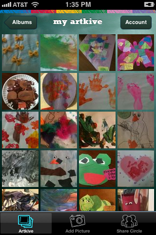 But what to do with the old art when I need room for the new stuff? Well, I downloaded this app on my iPhone called ArtKive. It’s advertised as The Clutter Free Way to Save and Enjoy Your Child’s Artwork. Since I found this app more than halfway through her daycare career, I had to backtrack and was lucky that her daycare puts the date on almost everything. Artkive lets you file stuff by child and you can add a date, grade, title and description. I decided to put all of her stuff from her daycare center into one album instead of creating one per year. I took photos only of the ones that I thought were extra cool. I think I ended up putting about 50 photos in.