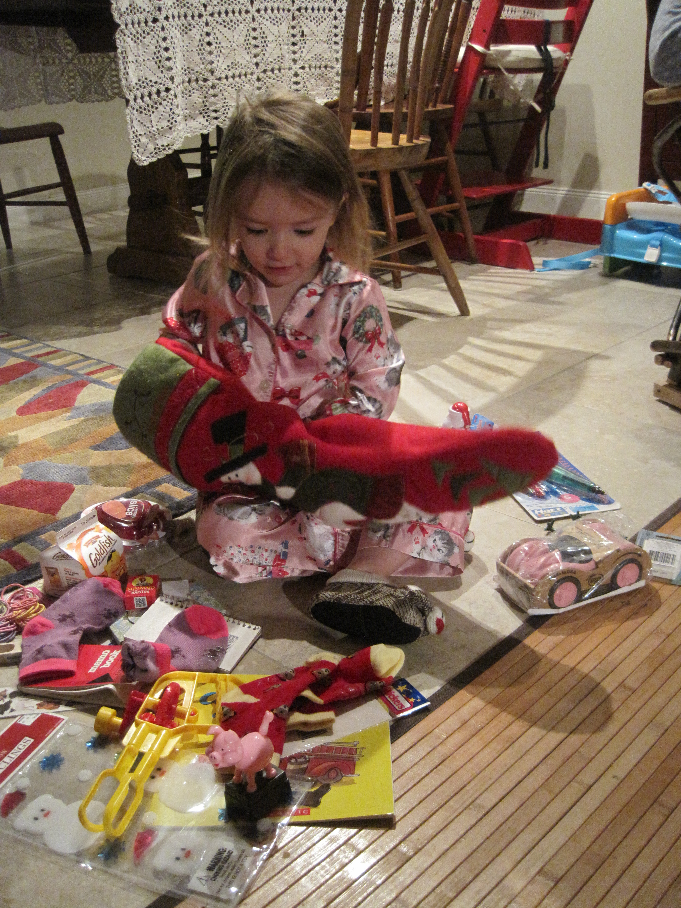 Even though they were far from home, Santa was able to find M and S at Grandma Jane’s house and fill their stockings. Here they are opening their stockings.