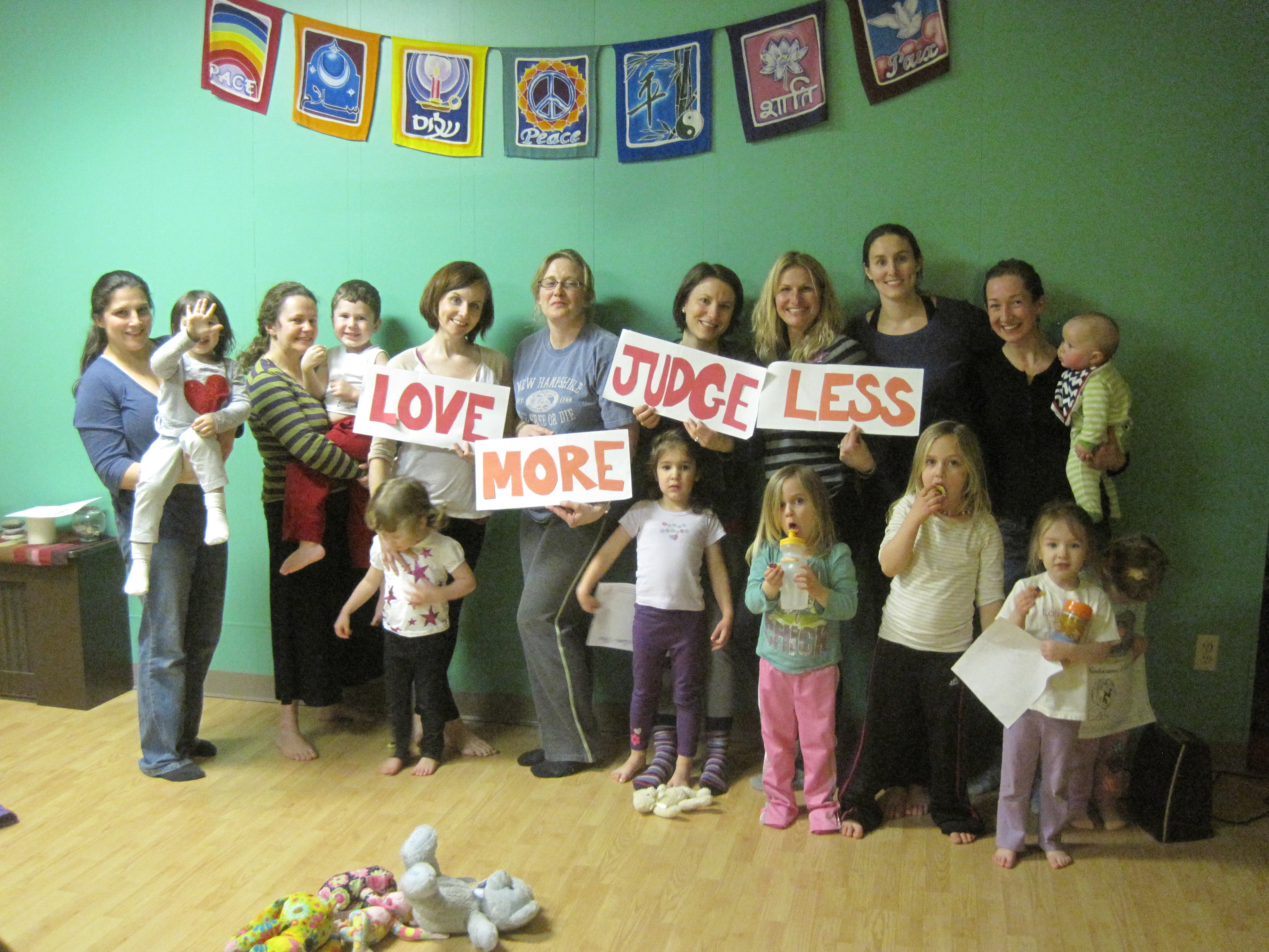 Happy #Moms4moms Day! If you’re not sure what this, read about it here. It’s a day to celebrate a campaign for judgment free motherhood. We’re asking everyone to think about Loving More and Judging Less. We asked people to take photos with their fellow moms and show some support. I hooked up my work gals (plus a few) and then also snapped a photo with my mommy and me group. Can you feel the love?