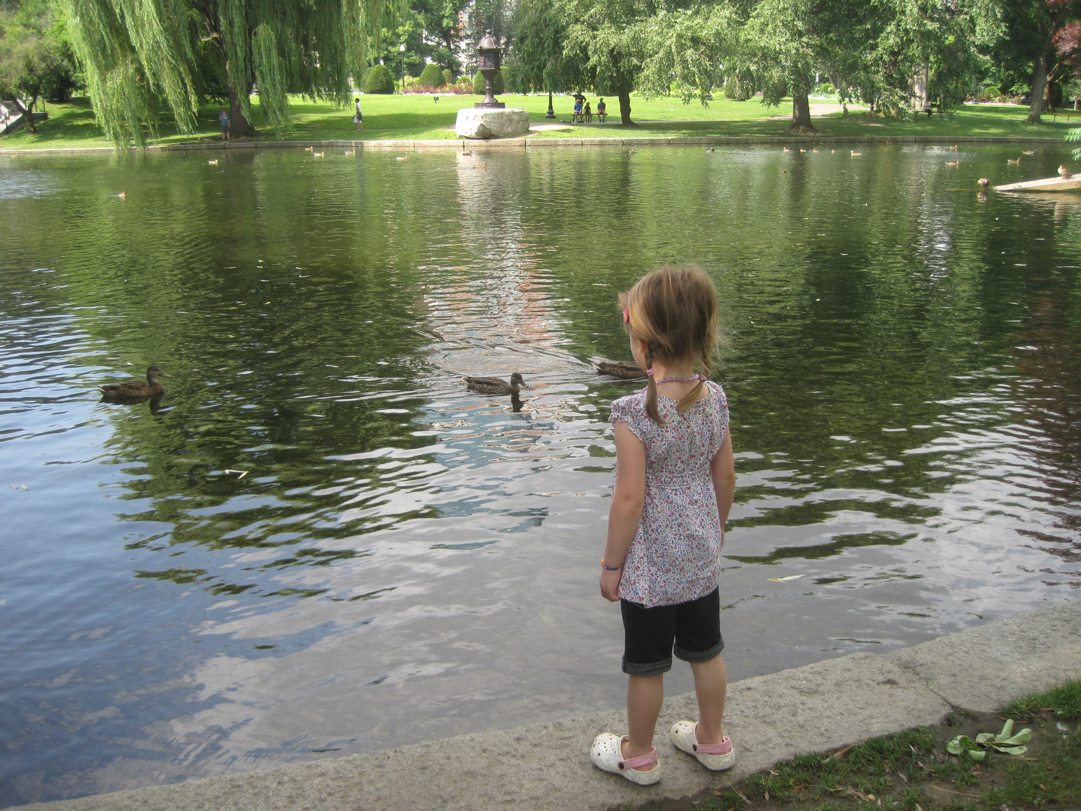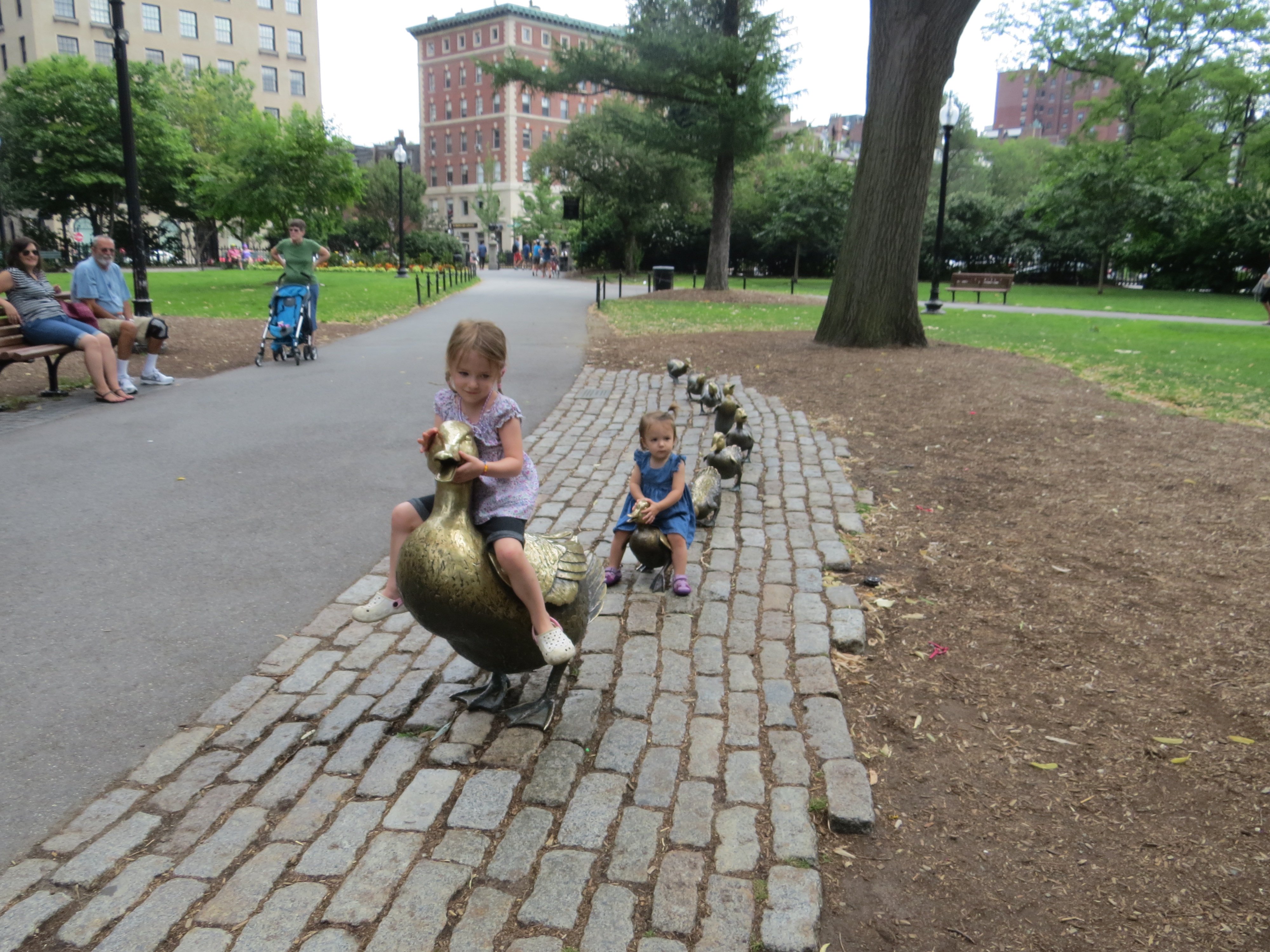When I was about four I loved the book Make Way for Ducklings and when we were in Boston, my parents took me to the Public Gardens. My mom had the great idea to take M there for her birthday! She hadn’t read the book, so we got a copy from the library a few days before and starting hyping up the trip. M didn’t disappoint – she had a great time feeding the ducks and riding the swan boats. We drove over for the morning, walked around the park, rode on a swan boat, had lunch, braved the rain to run back to the car and were home by mid-afternoon. I love living so close to so many great places!