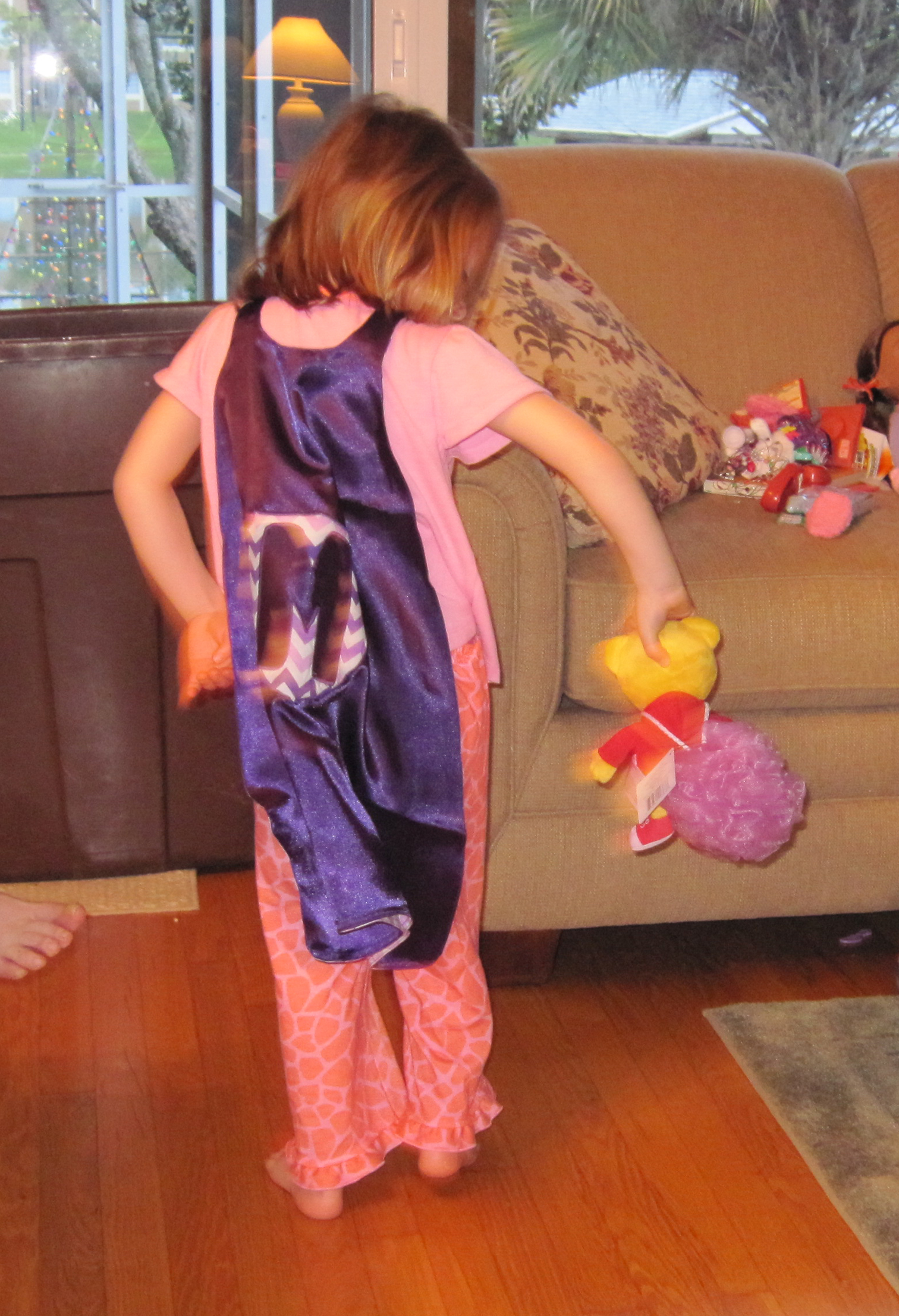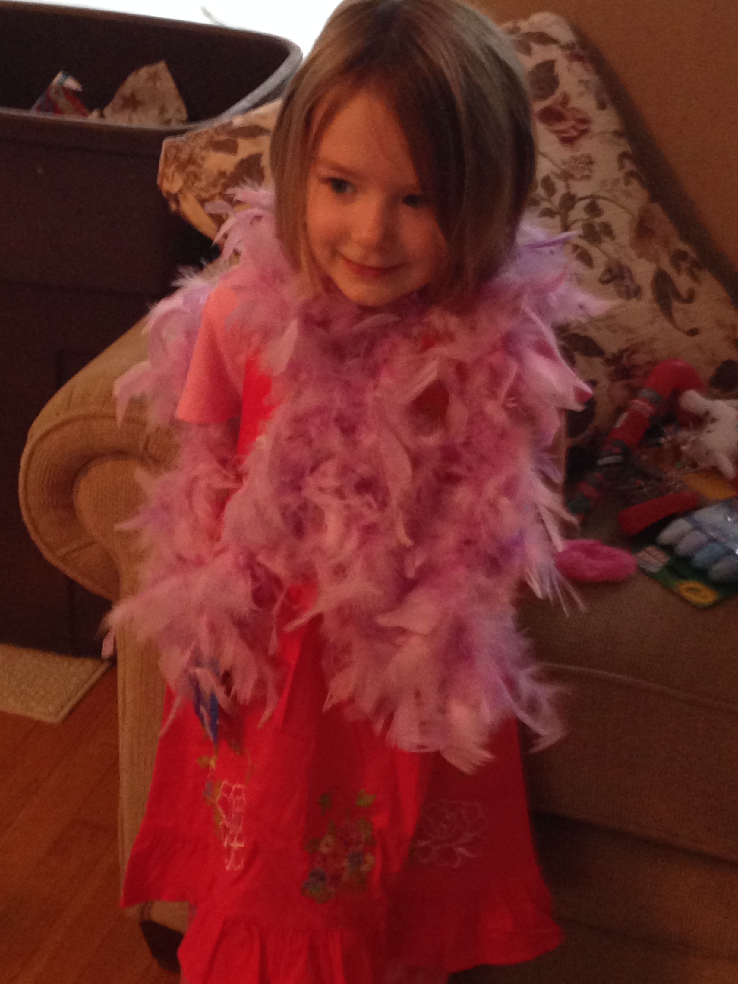 Thank you to Aunt Beth and Uncle Roger for the adorable dresses and the feather boas. I promise S liked hers, even though she looks less than thrilled here.